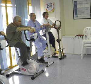 Durante il percorso riabilitativo i pazienti che sono ritenuti idonei sono sottoposti giornalmente, sotto la guida e la sorveglianza del fisioterapista, ad almeno due sedute di attività fisica di gruppo in palestra, sedute di durata variabile dai 20 a 45 minuti.